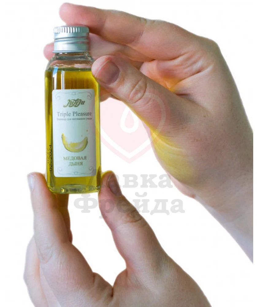 Съедобный лубрикант Juleju Triple Pleasure имеет сладкий вкус и аромат медовой дыни, который усиливает обоюдное удовольствие от оральных ласк. Эликсир можно использовать для легких массирующих движений с последующими поцелуями.