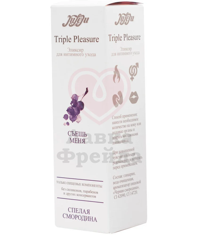 Съедобный лубрикант Juleju Triple Pleasure порадует ярким вкусом и ароматом спелой смородины, с которым оральный секс станет еще приятней и нежнее. Эликсир можно использовать для легких массирующих движений с последующими поцелуями..