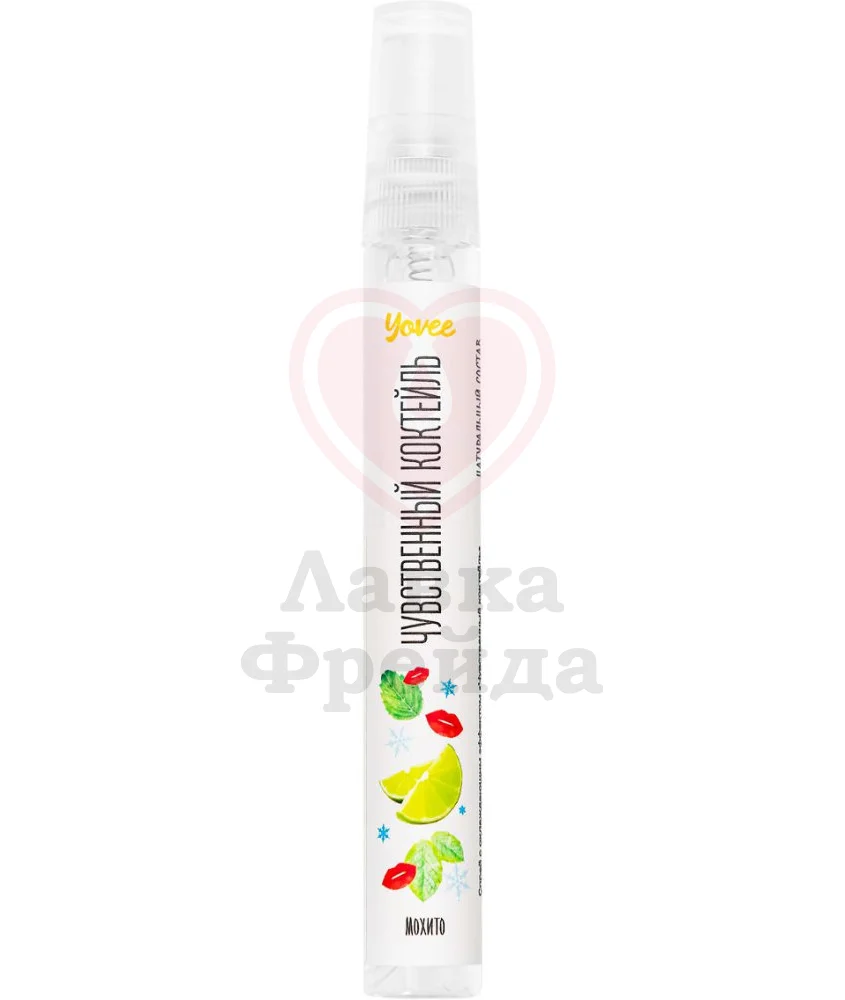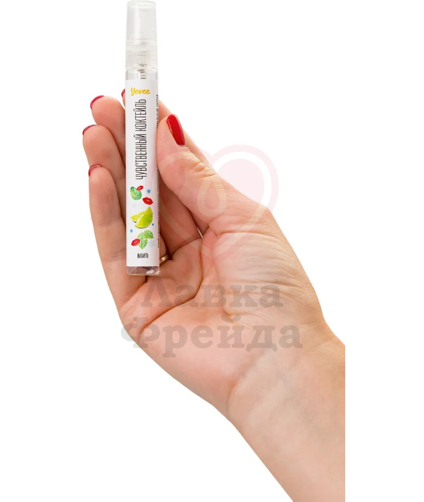 Спрей Yovee Чувственный коктейль предназначен для оральных ласк. Особенно полезен будет для изучения техники "глубокая глотка" - он обладает легким охлаждающим действием, которое снижает рвотный рефлекс и провоцирует усиленное выделение слюны. Спрей имеет вкус и аромат мохито - освежающего коктейля из мяты и лайма. Вытяжки розмарина и граната, находящиеся в составе средства, а также экстракт эвкалипта, являющийся натуральным афродизиаком, будут дополнительно усиливать возбуждение. Чтобы использовать, распылите 2-3 дозы спрея себе в рот, непосредственно перед сексом.