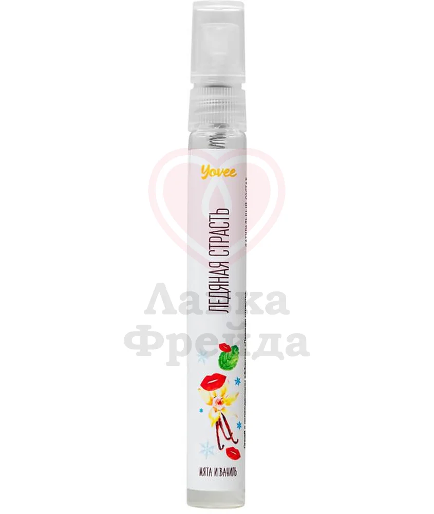Спрей для рта Ледяная страсть снижает уровень чувствительности горла, что дает возможность использовать технику "глубокая глотка" во время оральных ласк. Средство с охлаждающим эффектом также можно использовать для усиления чувствительности сосков. В составе спрея находится ментол, вызывающий ощущение холода и покалывания на коже, и эвкалипт, являющийся натуральным афродизиаком. Наносить средства необходимо непосредственно перед занятием любовью. Помимо освежающего и охлаждающего эффекта, спрей усиливает слюноотделение, за счет чего обеспечивается лучшее скольжение.
