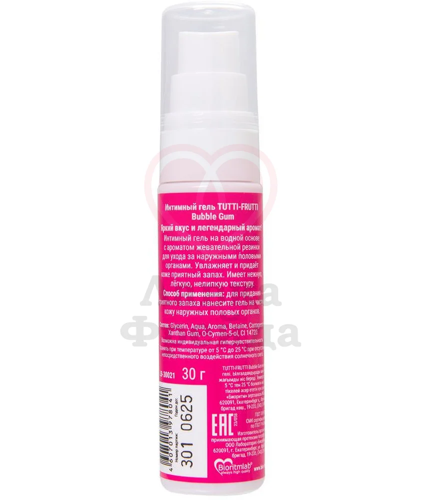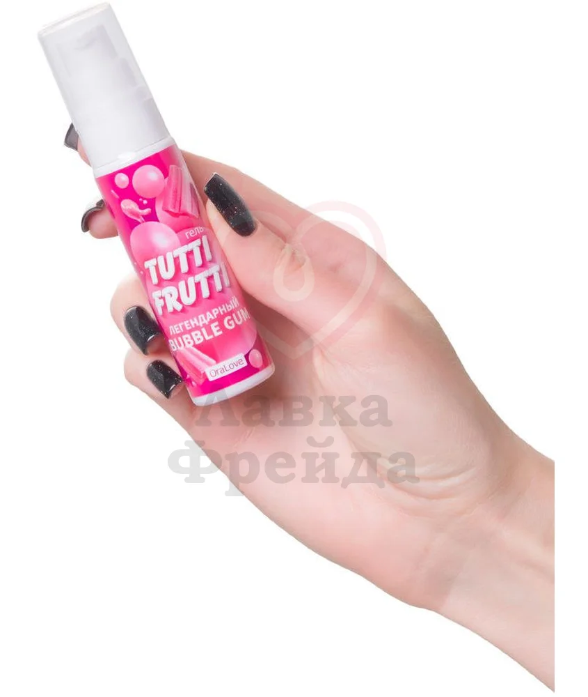 Лубрикант Tutti Frutti OraLove имеет яркий вкус и аромат бабл гам, который добавляет большей игривости оральным ласкам и чувственным поцелуям по всему телу. Знакомый с детства аромат жевательной резинки создаёт непринуждённую атмосферу, помогая расслабиться и раскрепоститься.