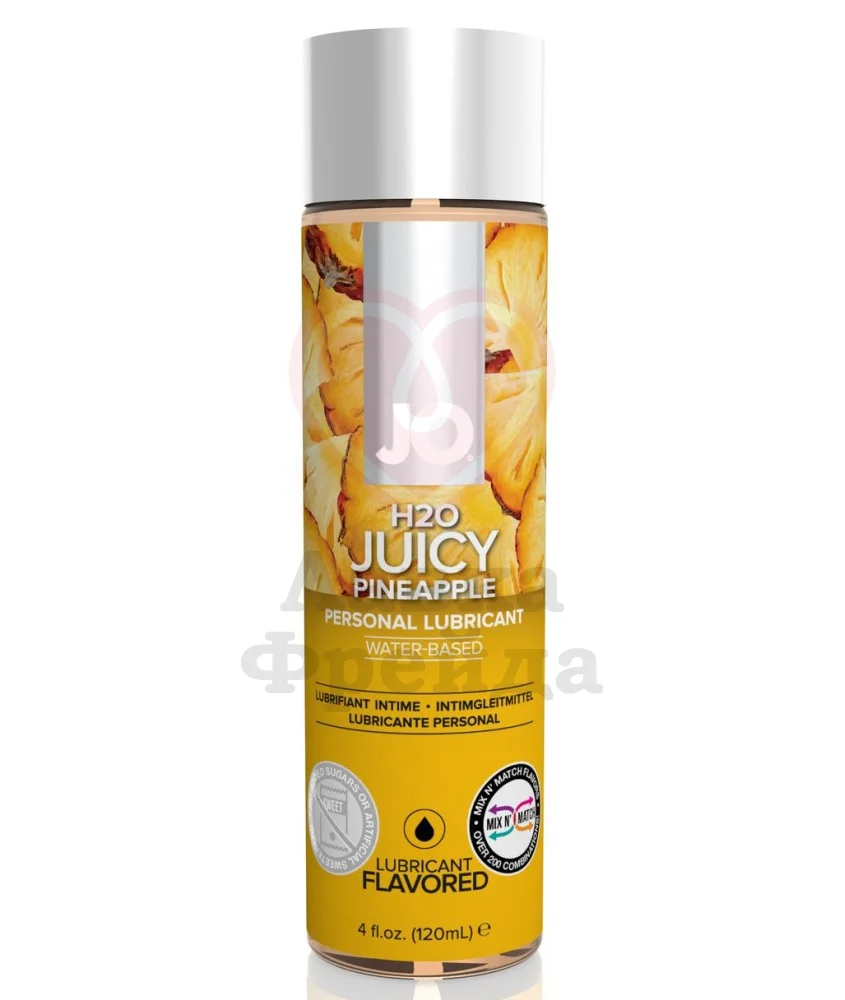 Лубрикант System JO H2O Flavored Juicy Pineapple со вкусом и ароматом ананаса добавит разнообразия в ваши интимные отношения. Съедобная смазка содержит только натуральные компоненты и может стать сладкой приправой для оральных ласк.