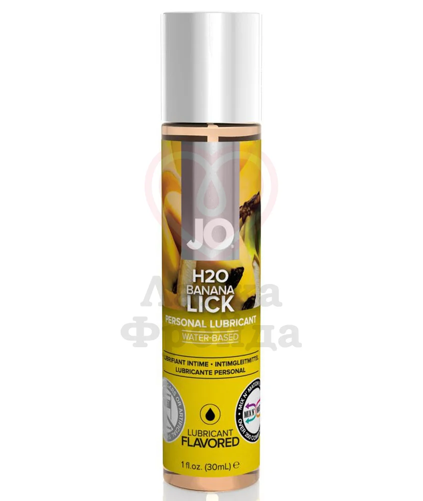 Лубрикант System JO H2O Flavored Banana Lick со вкусом и ароматом банана добавит разнообразия в ваши интимные отношения. Съедобная смазка содержит только натуральные компоненты и может стать сладкой приправой для оральных ласк.