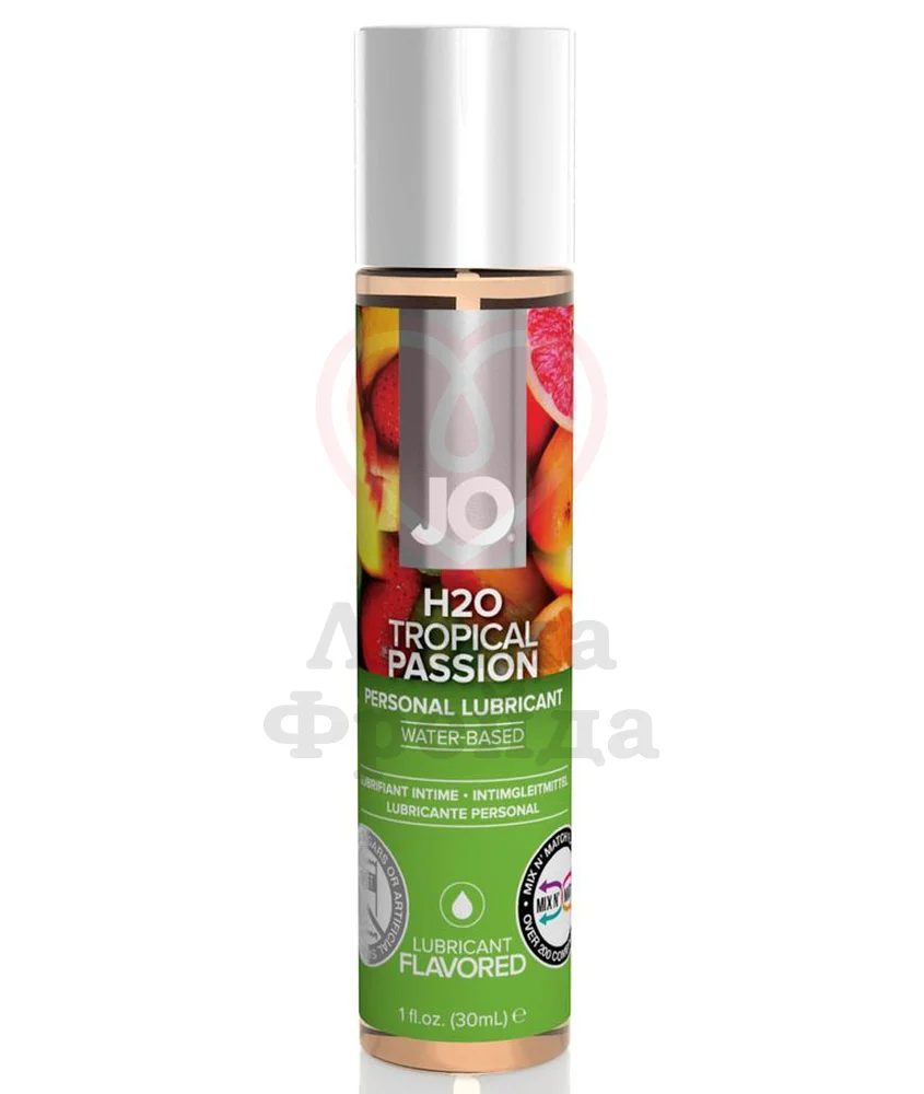 Лубрикант System JO H2O Flavored Tropical Passion со вкусом и ароматом тропических фруктов добавит разнообразия в ваши интимные отношения. Съедобная смазка содержит только натуральные компоненты и может стать сладкой приправой для оральных ласк.