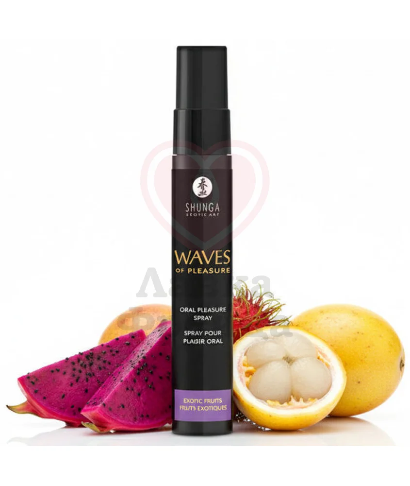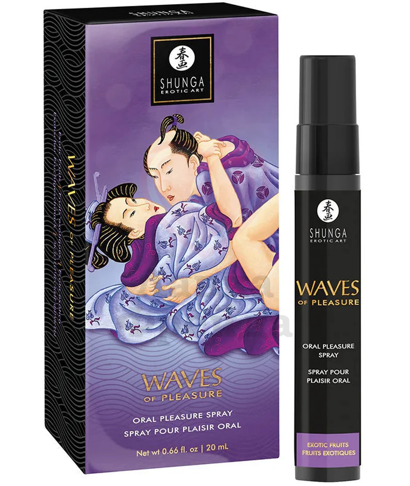 Shunga Waves of Pleasure Exotic Fruits ― спрей для орального секса, имеющий вкус и аромат экзотических фруктов. Упаковано в лёгкий и компактный флакон объёмом 20 мл, дополненный удобным распылителем. Ароматное средство идеально подходит для ласк языком, поцелуев и чувственных экспериментов с внешними эрогенными зонами, как у него, так и у неё. Спрей усиливает слюноотделение, делая ласки более плавными и приятными для обоих партнёров. Формула разработана специально для обладателей чувствительной кожи. Чтобы использовать, нажмите несколько раз на распылитель и вот вы уже готовы к действию!