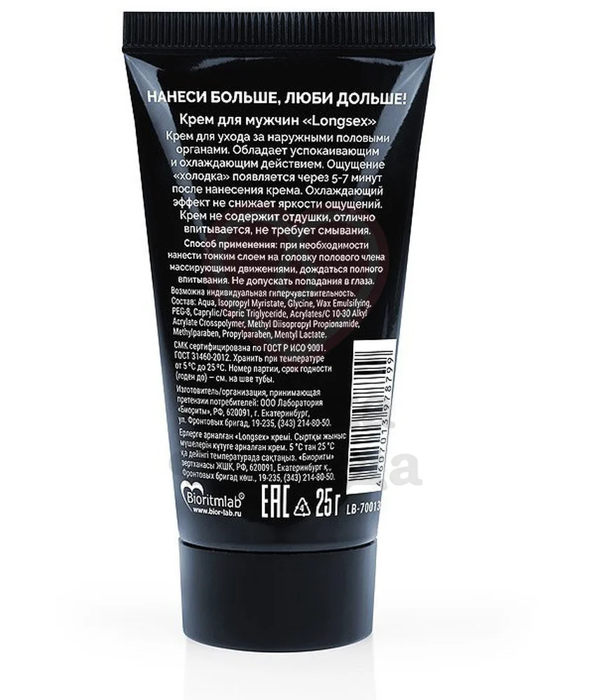 Продлевающий крем LongSex из серии «Ты и Я» предназначен для замедления наступления семяизвержения. Он выпускается в удобном тюбике и используется за несколько минут до полового акта. Улучшает состояние кожи пениса, усиливает приятные ощущения и может совмещаться с секс-игрушками и презервативами. Использование эрекционного кольца еще больше усилит эффект.