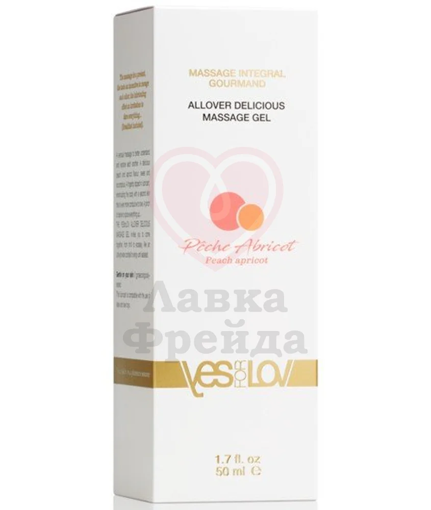 Гель-лубрикант YESforLOV Allover Delicious Massage Gel с ароматом и вкусом персика и абрикоса — универсальный ароматный продукт для классического секса и чувственного массажа. Имеет три варианта использования: