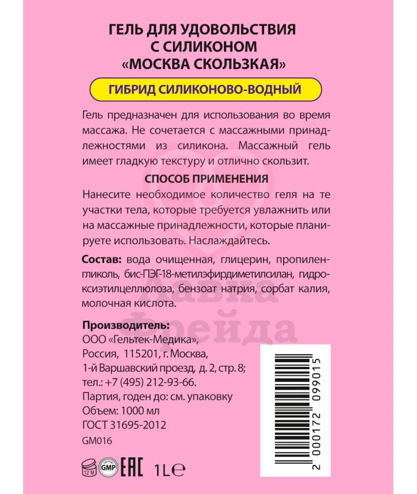 Лубрикант Москва Скользкая на водно-силиконовой основе 1 л