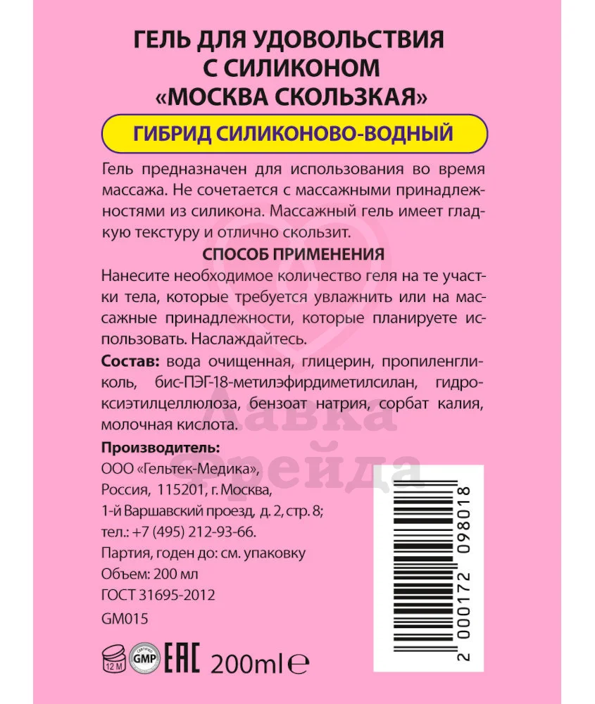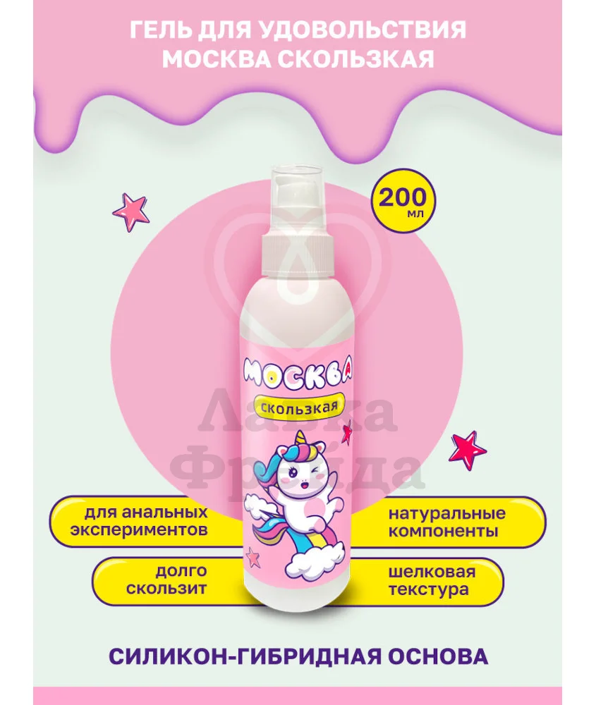 Лубрикант Москва Скользкая создан для наиболее плавного и длительного эффекта скольжения во время близости с партнером. Текстура у смазки — густая и шелковистая — подойдет для разных видов удовольствия: секса, интимного массажа или мастурбации.
