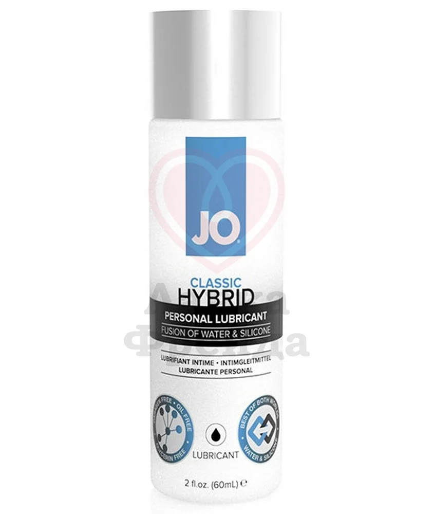 Лубрикант на водно-силиконовой основе JO Hybrid Lubricant сочетает в себе лучшие свойства этих двух видов. Силикон обеспечивает длительное шелковистое скольжение без ощущения липкости. За счет водной основы вы сможете использовать лубрикант с игрушками, легко смывать его водой даже без мыла, не оставляя следов на одежде или белье.