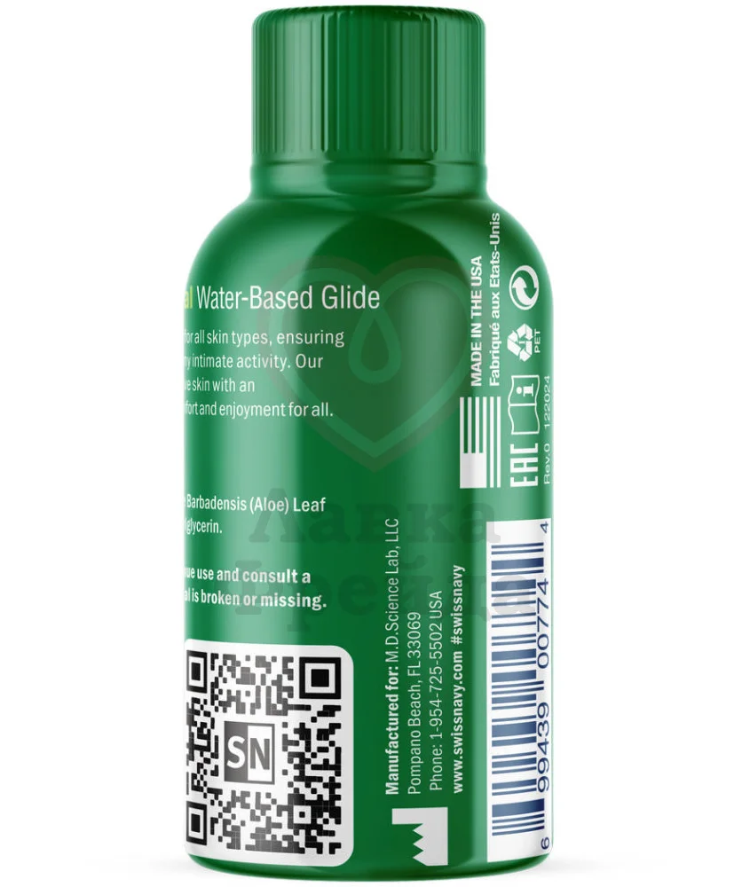 Натуральный лубрикант Swiss Navy All Natural создан для людей, склонных к аллергии и обладающих чувствительной кожей. В нем полностью натуральный состав и отсутствуют парабены, глицерин, нефтепродукты, красители и ароматизаторы, которые могут привести к раздражению и другим неприятным последствиям. А формула с алоэ успокаивает кожу.