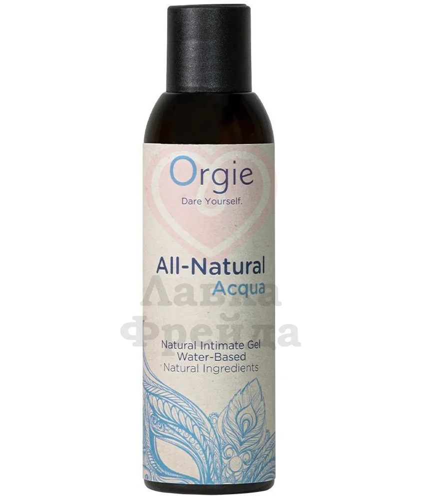 Смазка Orgie All Natural Acqua идеально подходит для классического вагинального проникновения. Средство на водной основе совместимо с презервативами и игрушками из любых материалов. В составе геля только натуральные ингредиенты, включая естественный растительный загуститель, обеспечивающий консистенцию лубриканта. Гель не имеет вкуса, цвета или запаха, что дает возможность сконцентрироваться лишь на ощущениях от интимной близости. Легко отмывается от постельного белья.