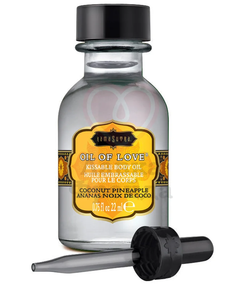 Несмотря на необычный формат бутылочка имеет удобный аппликатор, а само средство имеет водную основу, чтобы не оставлять следов на простынях или белье. Версия KamaSutra Oil of Love Coconut Pineapple обладает ароматом и вкусом ананаса и кокоса, чтобы дополнить вашу близость приятными впечатлениями ещё больше: целуйте и слизывайте капельки с кожи, возбуждая вашего партнера всё сильнее и сильнее.