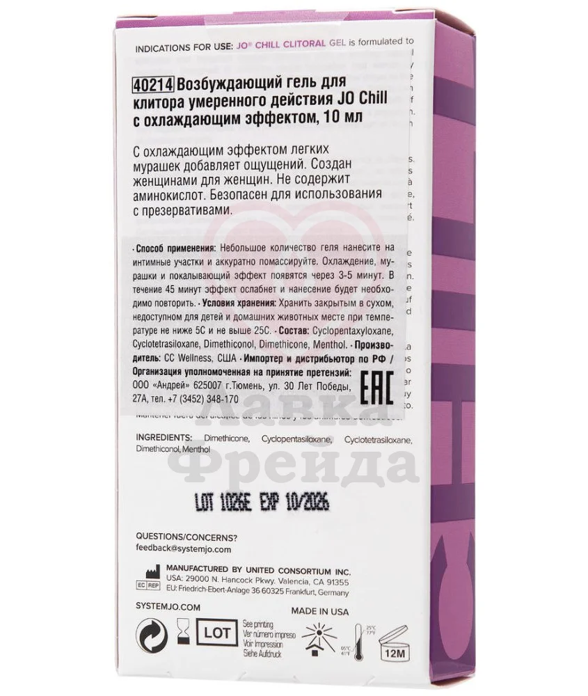 Возбуждающий гель Jo Chill точечно наносится на клитор, создавая эффект лёгкого охлаждения и покалывания, что обостряет чувствительность и усиливает приток крови к эрогенной зоне. Деликатное средство действует мягко, не вызывая резкого жжения или дискомфорта.