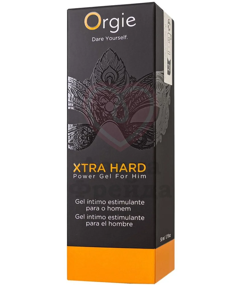 Гель Orgie Xtra Hard Power Gel for Him имеет в составе экстракт стручкового перца и других натуральных стимуляторов, комбинация которых добавляет мужчинам энергичности и сексуальности. Средство повышает уровень естественного возбуждения и способствует более длительной и крепкой эрекции. Чтобы использовать, небольшое количество геля мягкими, массирующими движениями нужно один раз в сутки втирать в член, а дополнительную порцию наносить перед занятиями любовью. Подходит для ежедневного использования и имеет накопительный эффект. За счёт водной основы, подходит к любым презервативам и секс-игрушкам.