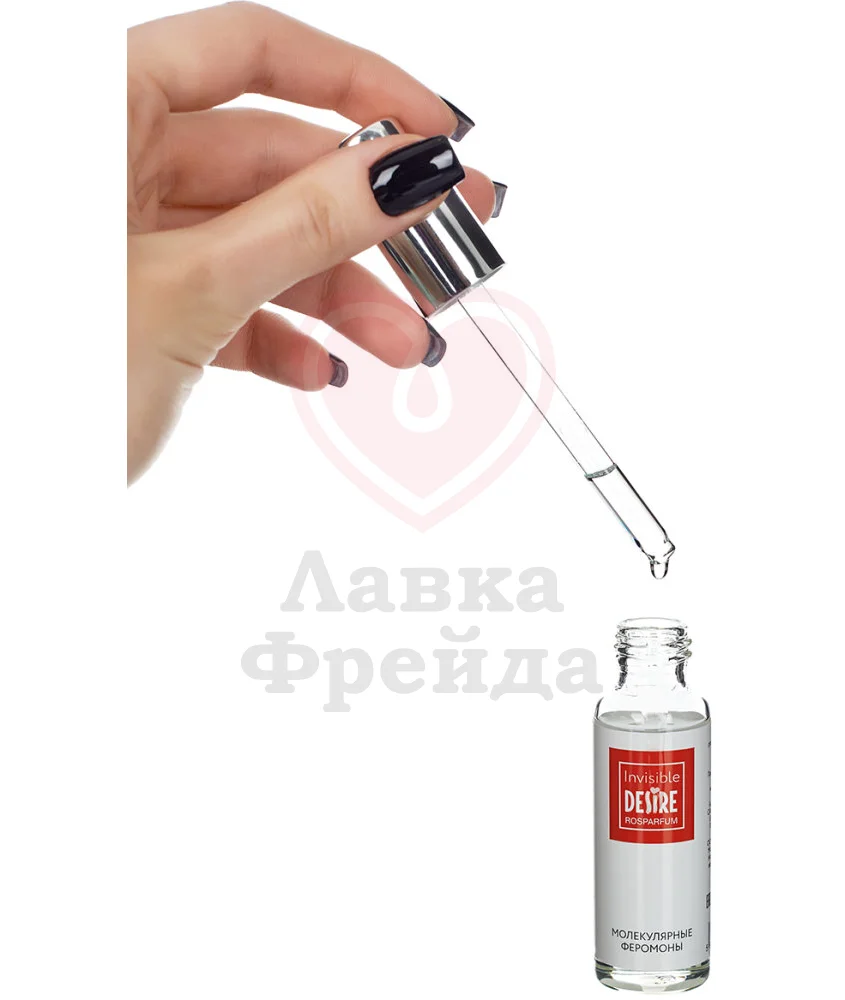 Молекулярные феромоны Invisible - идеальное дополнение женского образа, придающее еще большей притягательности и сексуальности. Для большего эффекта лучше наносить на точки, где чувствуется пульс. Средство не имеет собственного запаха, поэтому оно не будет заглушать естественный аромат тела, или его можно комбинировать с любым парфюмом. Стеклянный флакон дополнен удобной пипеткой, которой можно точно набирать нужное количество средства.