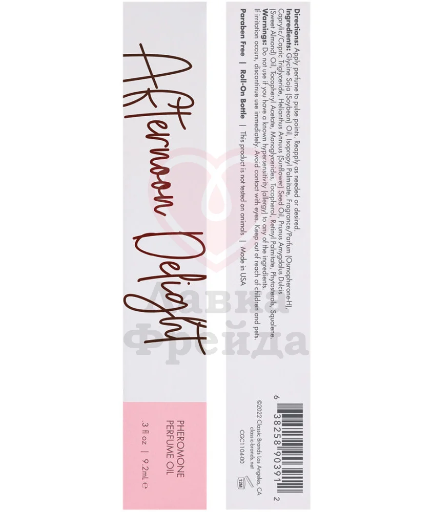 Яркий тропический цветочный аромат CG Afternoon Delight идеально подходит для кокетливого веселья и мечтательных свиданий. Сексуальная смесь игристого ананаса с острым оттенком цитрусовых, увенчанным незабываемыми нотами кокосовой воды и белой пальмы вскружит голову окружающим, а за счет феромонов в составе средства, мужчины наверняка обратят на вас внимание. Аромат необходимо наносить на точки пульса - запястья и шею. Запах масла смешается с ароматом вашего тела, создав уникальный, неповторимый шлейф. Маленький ролик дает возможность с удобством наносить нужное количество масла на кожу.