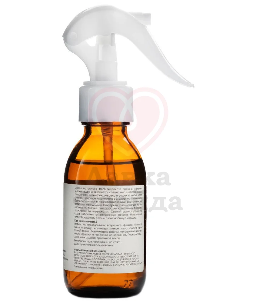 Очищающий спрей Ёska выполнен на натуральной основе и бережно позаботится о чистоте ваших секс-игрушек. Идеально подходит для дезинфекции разнообразных, даже самых нежных материалов перед хранением. Природные ингредиенты в составе — гидролат орегано, эфир кедра и эвкалипта — обладают антисептическими свойствами, предотвращая размножение вредоносных бактерий на поверхности.