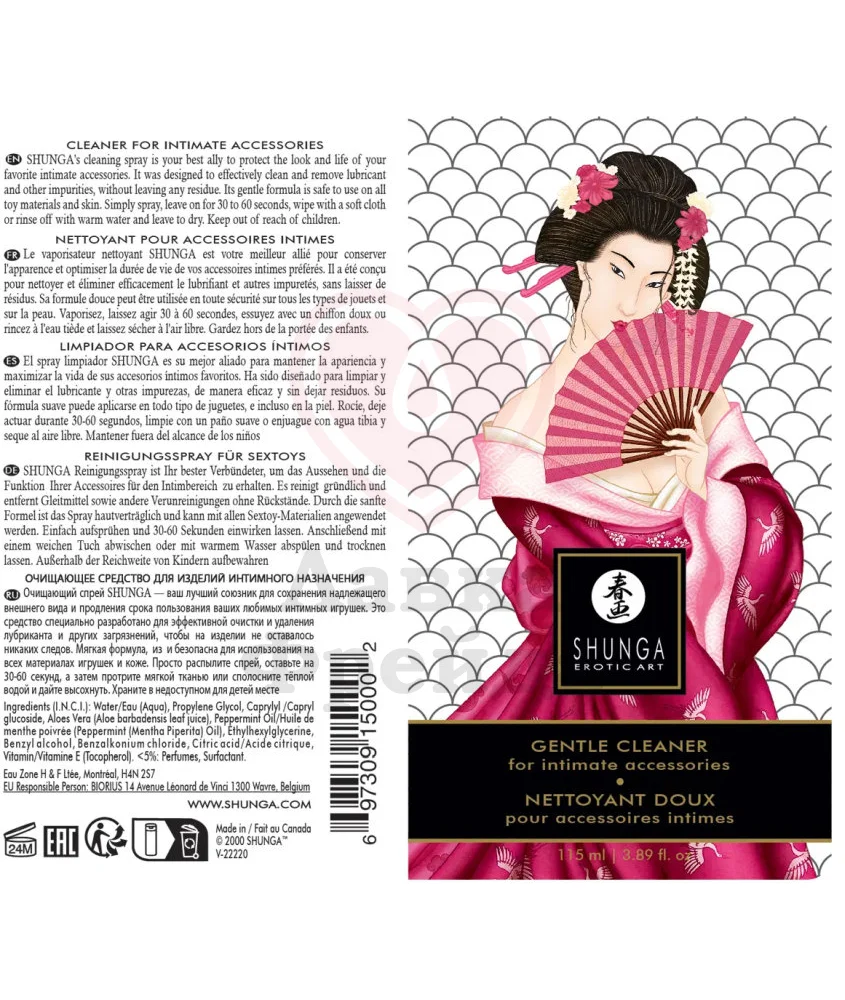 Очищающий спрей Gentle Cleaner быстро и эффективно удаляет загрязнения с кожи или любых секс-игрушек, максимально продлевая срок использования девайса. Чтобы использовать, средство нужно распылить на игрушку или тело, оставить на 30-60 секунд, а затем бережно протереть нежной тканью, или промыть под струей теплой воды. Сохнет на воздухе, не оставляя никаких следов. Подходит только для внешнего использования. Не брызгать на травмированную кожу, с открытыми ранами или любыми другими повреждениями.