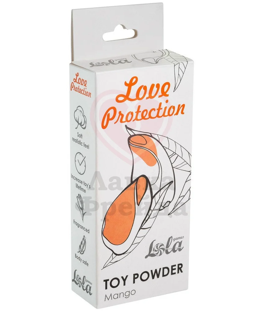 Пудра для игрушек Love Protection выходит в нескольких удобных форматах, к примеру данная версия имеет аромат манго и поможет сохранить ваши игрушки в лучшем виде. Использовать её очень просто в качестве завершающего шага в уходе за девайсами, наносится она на чистую и сухую поверхность игрушки. Чаще всего пудра необходима для сохранения самых нежных материалов — термопластичной резины или близких к реалистичным. Лучше всего начинать уход за новой игрушкой сразу после первого применения, чтобы продлить её срок службы и сохранить бархатистость ощущений при прикосновении.