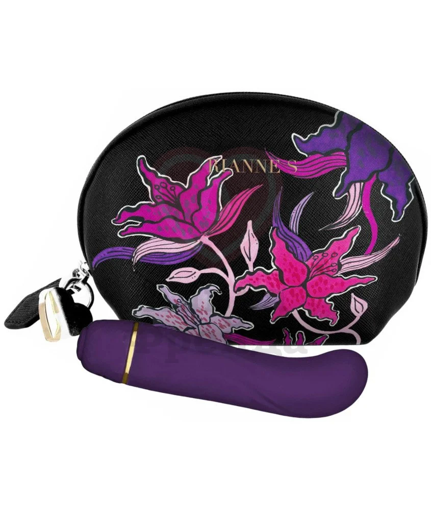 Работает он от 1 AA батарейки, которая в комплект не включена. Зато вместе с вибратором Rianne S предоставляет роскошную сумочку для хранения: в этой версии игрушки косметичка выполнена из искусственной кожи и дополнена ярким цветочным принтом. К сумочке прилагается специальный замочек в виде сердечка, который можно запереть при помощи ключика: и никто не узнает о вашем небольшом секрете!