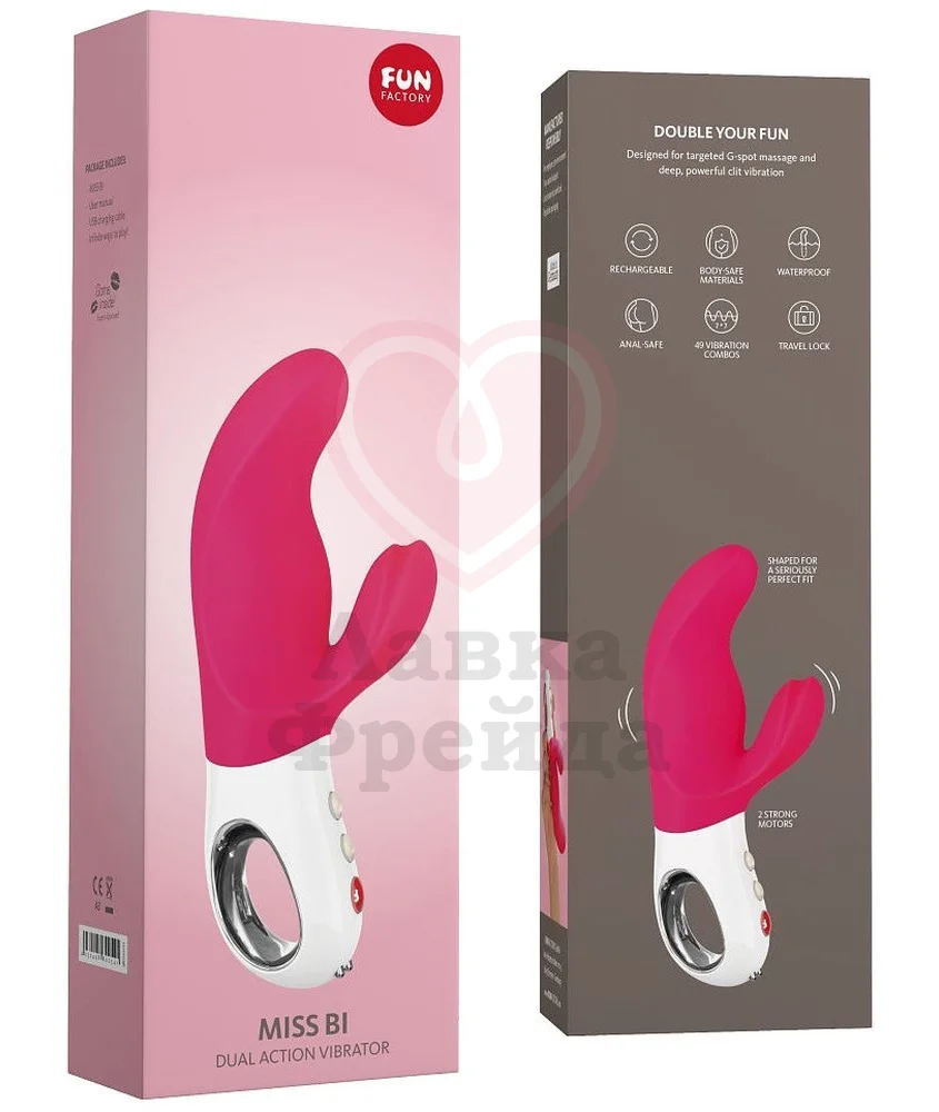 Вибратор Fun Factory MiSS Bi сочетает феноменальную стимуляцию клитора и непосредственное воздействие на точку G. Два моторчика регулируются отдельно, чтобы вы смогли выбрать именно ваш путь к оргазму.