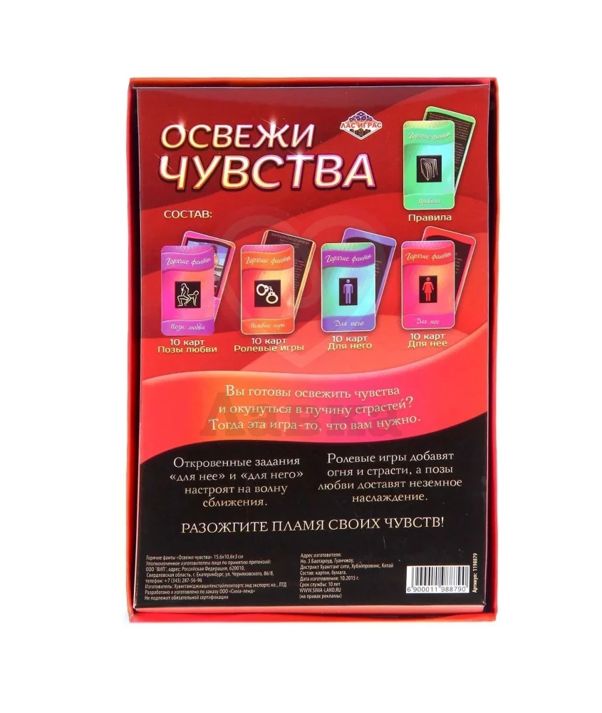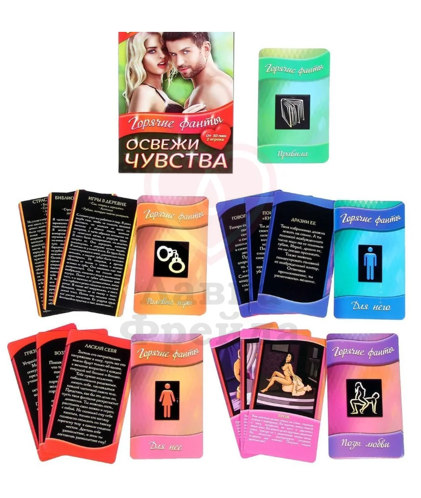 40 ярких карточек позволят освежить ваши чувства и разжечь огонь любви. Желаем приятной игры!