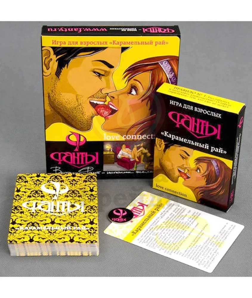 Фанты «Карамельный рай» были вдохновлены восточными сексуальными практиками — здесь найдётся место необычным позам из камасутры, тантрическому массажу, горячему маслу, расслабляющей ванне и романтическим вечерам с ароматными свечами. Формат «фант» - это всем знакомый вариант развлечения, когда участники тянут специальные карточки с заданиями, которые им предстоит выполнять одному или вместе с партнёром. Задания здесь особенно игривые, эротичные и неожиданные. Все фанты делятся по типу сложности: белые, жёлтые, розовые и красные.