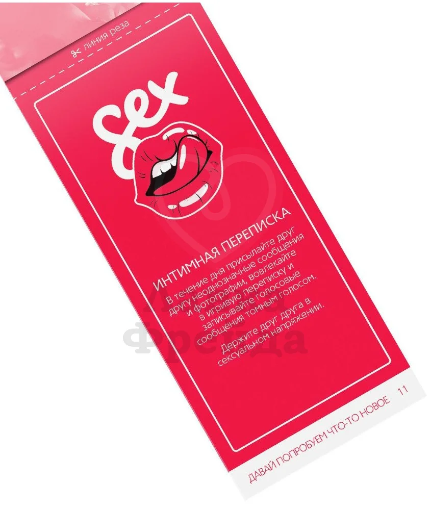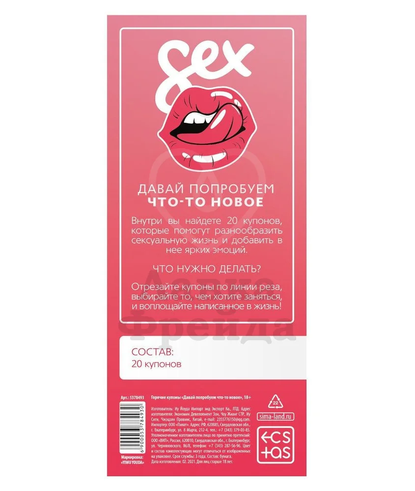 Книжка «Давай попробуем что-то новое» предлагает 20 страстных заданий для пары, чтобы поддержать интерес и воплотить необычные фантазии. На каждой из страничек вы найдете подробное описание игры: чаще всего это активность для двоих. Горячая переписка в течение дня, эротические игры в постели и многое другое. Купоны можно отрезать, а затем использовать в качестве вдохновения для перезагрузки ваших отношений.