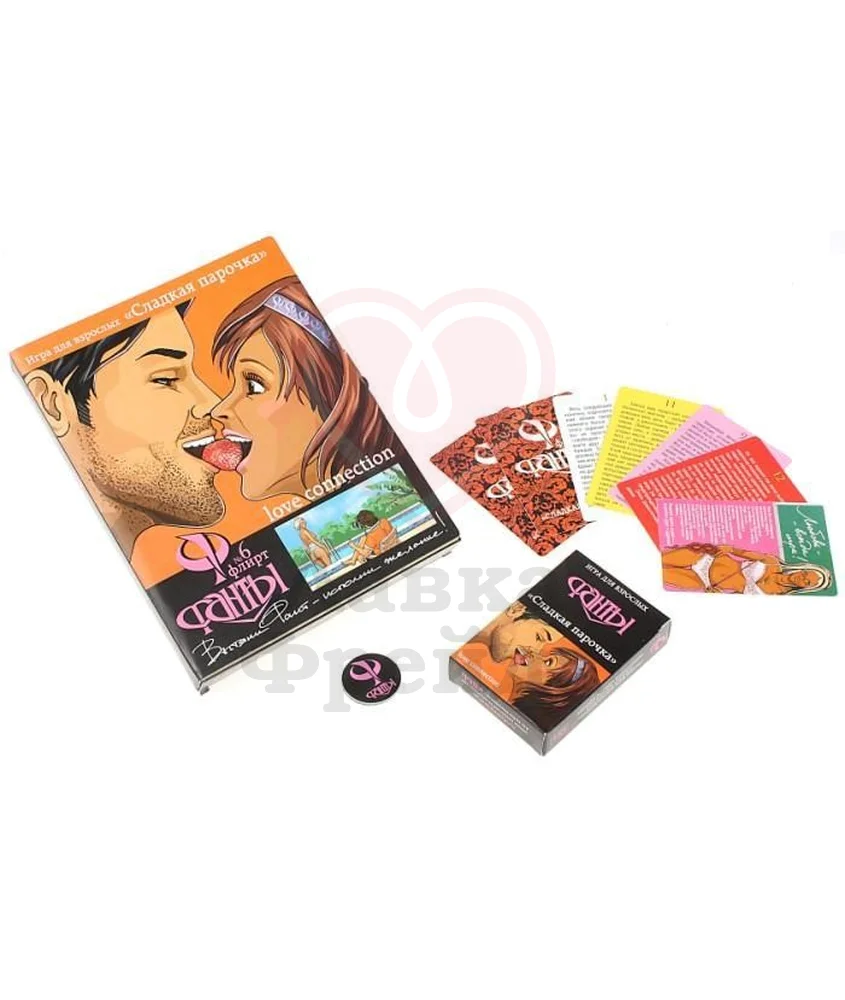 Игра настольная Фанты Флирт №6 Сладкая парочка - настоящая ''бомба'' против скуки в интимных отношениях. ''Подлить масла в огонь'', превратив типичный отпуск пары в невероятно романтическое приключение, — вот ее основная задача. То, что вы вряд ли позволите себе дома, можно и нужно устроить на отдыхе. Помните, что привычки — главный враг близости, а однообразие убивает любую любовь.