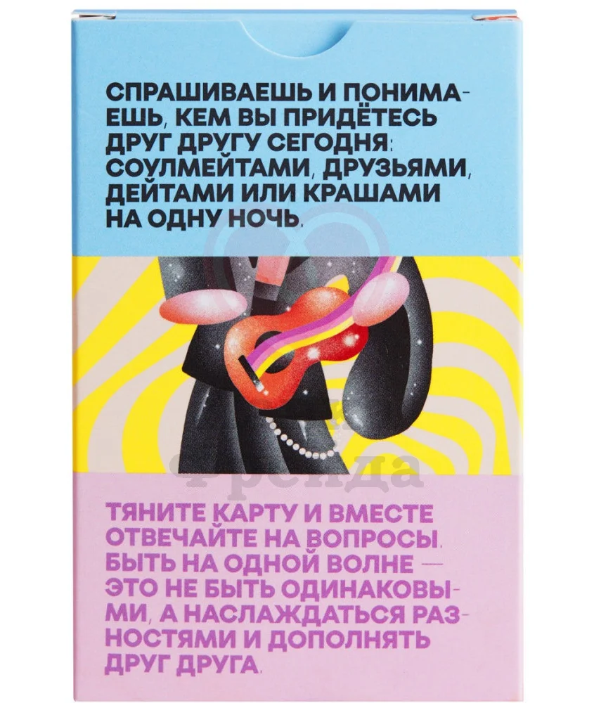 С помощью игры вы сможете как поближе узнать уже знакомых вам людей, так и познакомиться с новым человеком, возможно найдя в нем будущего лучшего друга или любовь на всю жизнь. На обратной стороне карточек находятся яркие пазлы - можно сделать перерыв в основной игре и насладиться небольшим отдыхом.