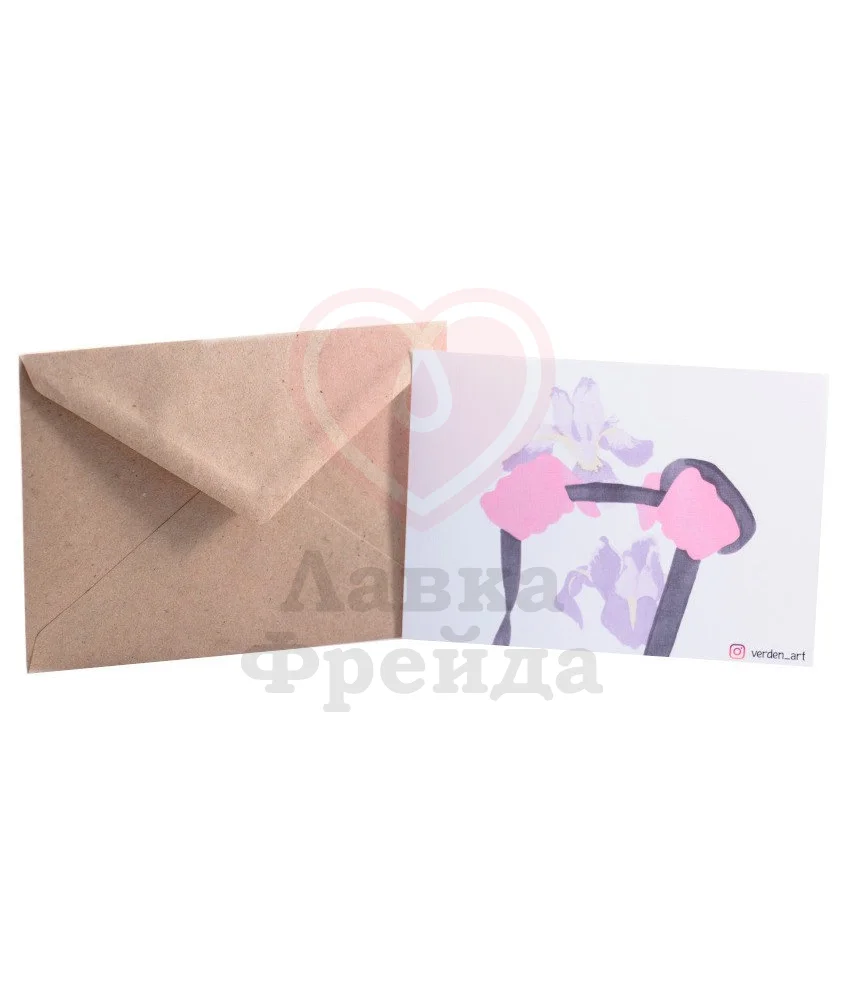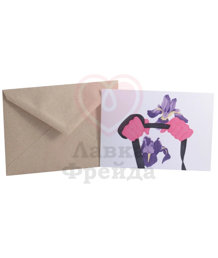 Стилизованная открытка от художницы @verden_art с нежными ирисами и атрибутами БДСМ-культуры может стать милым дополнением к любому вашему подарку. Напишите своё признание, поздравление или комплимент на обратной стороне, чтобы ваши слова запомнились надолго.