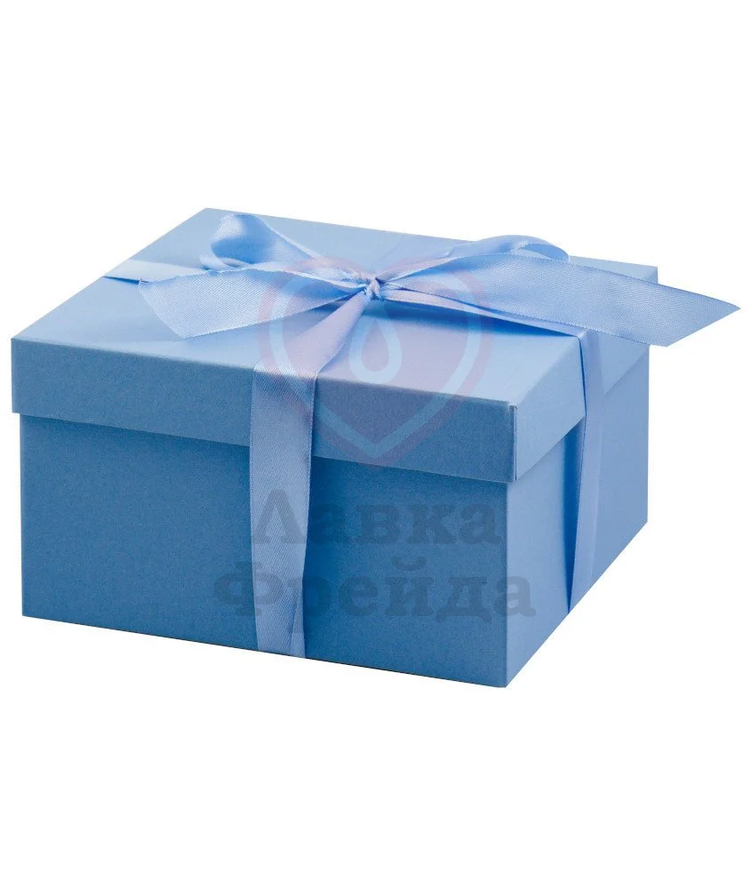 Подарочная коробка - быстрый способ красиво упаковать ваш ценный подарок. Эта коробка нежно-голубого цвета размером 15 х 15 х 9 см выполнена из плотного картона. Внутрь неё вкладывается цветной бумажный наполнитель, чтобы всё части подарка были расположены удобно и презентабельно. Сверху коробка перевязывается атласной лентой. Цвет наполнителя и ленты можно выбрать, как в нашем розничном магазине, так и при заказе через сайт. Укажите это в комментарии к заказу, и наш менеджер предложит доступные варианты.