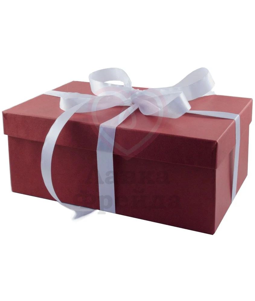 Подарочная коробка быстрый способ красиво упаковать ваш ценный подарок. Эта коробка бордового цвета размером 21 х 14 х 8 см выполнена из плотного картона. Внутрь неё вкладывается цветной бумажный наполнитель, чтобы всё части подарка были расположены удобно и презентабельно.