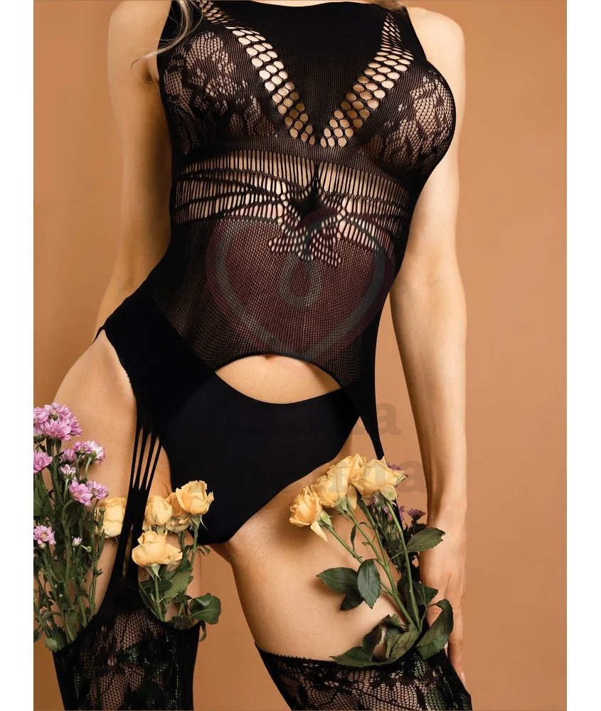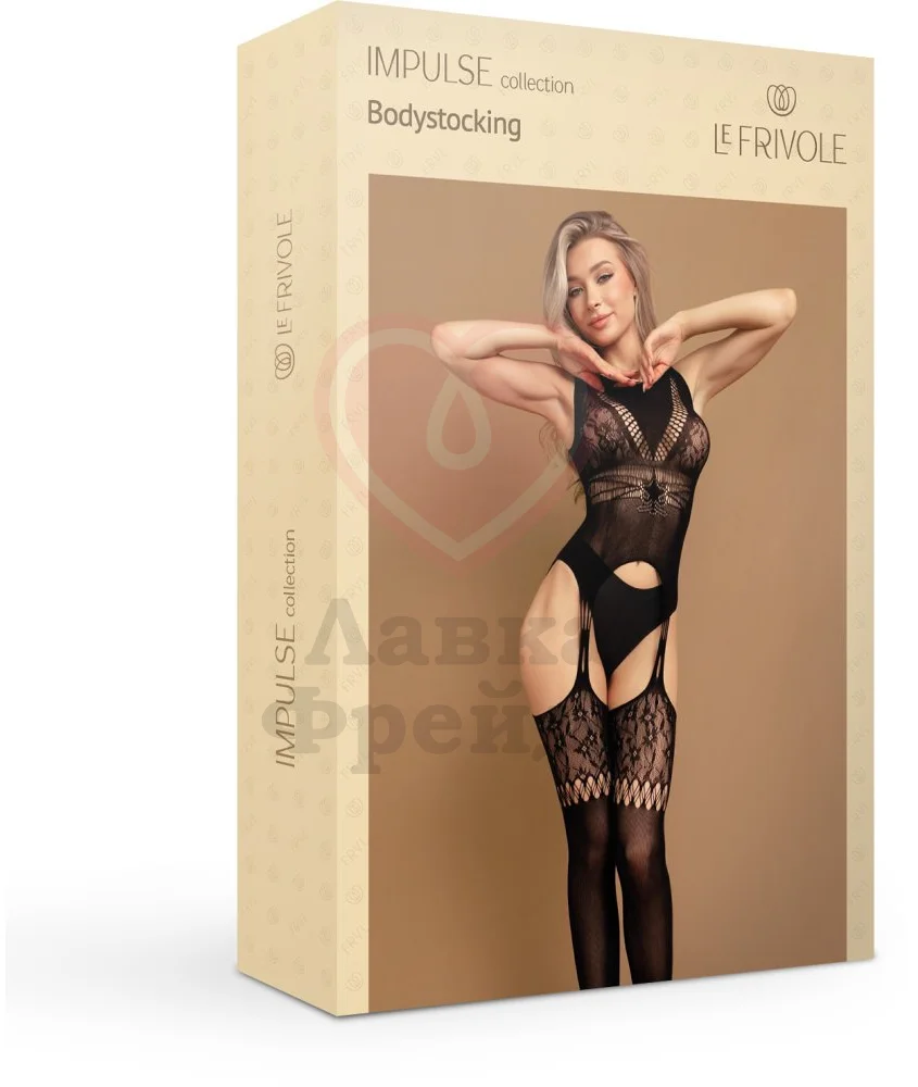 Верхняя часть боди Impulse прячет ключицы под плотным материалом, но привлекает внимание к груди кружевными элементами. Узкие пажи притягивают взгляд к красоте и гладкости бёдер, а имитация чулок украшена изящным цветочным узором. Тактильно приятный материал комбинезона, отлично тянется, поэтому модель будет как раз и миниатюрным девушкам, и леди размера XXL. Открытый доступ к интимным частям тела, даёт возможность наслаждаться близостью, даже не раздеваясь.