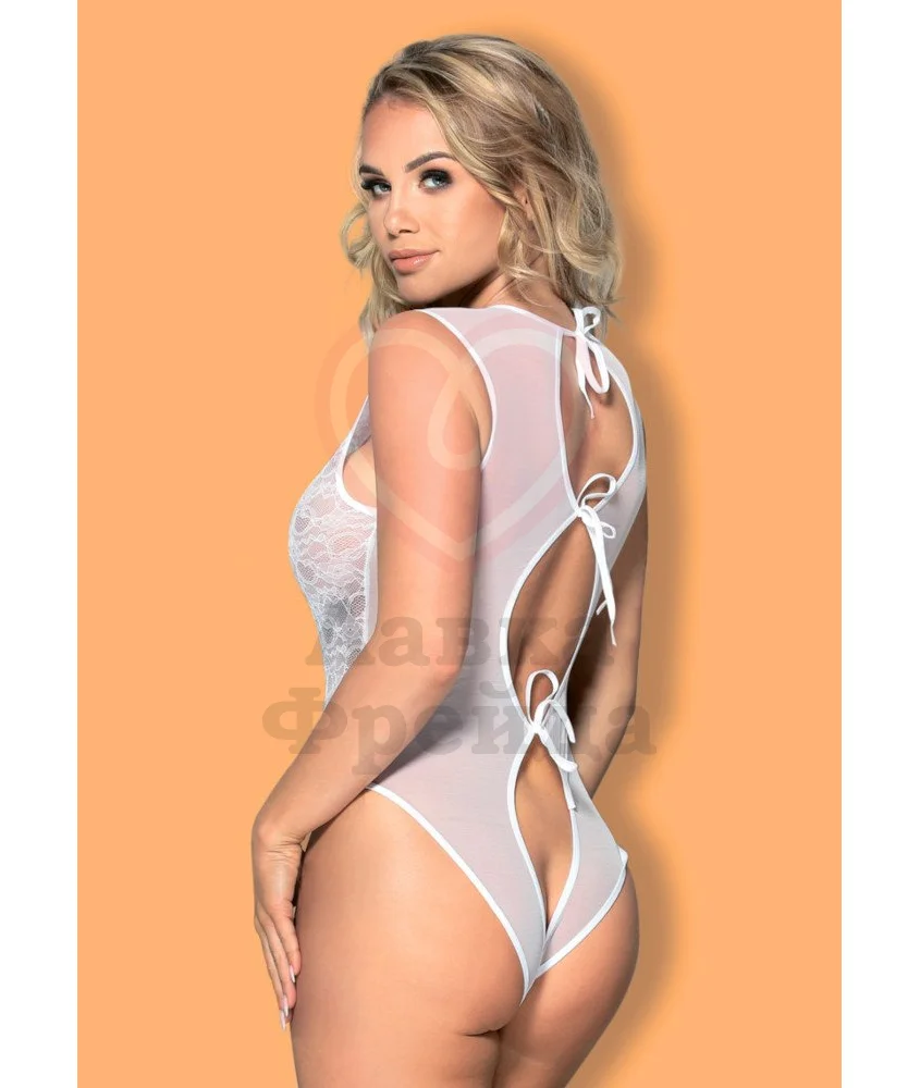 Белое соблазнительное боди Candy Girl Vesta прекрасно очерчивает силуэт. Спереди образ украшает большое количества кружева, а сзади серия вырезов дополненная игривыми бантиками. Соблазнительные завязочки так и хочется побыстрее развязать, чтобы перейти к самым интересным взаимодействия с партнером.
