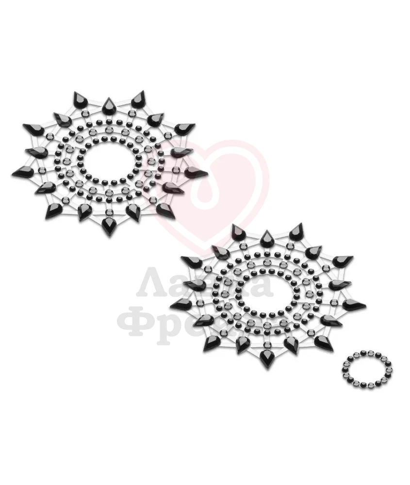 Petits Joujoux Gloria - блестящее украшение для тела из стразов. В наборе наклейки-пэстисы для груди. Аксессуар создан на основе 200 маленьких сверкающих капелек, которые будут искриться на теле, привлекая к себе внимание партнера. Такие украшения можно носить под эротическим бельем, чтобы создать еще более соблазнительный образ. Украшения держатся на коже при помощи безопасного клея: их комфортно использовать и легко снять. (При помощи клея для тела с похожими свойствами кристаллы можно применить повторно)