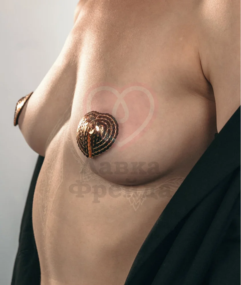 Пэстисы Lola Games Burlesque Rand имеют форму сердечек, сделанных из сверкающих золотом пайеток. При каждом вашем движении они будут сиять, привлекая внимание к вашей груди. Износостойкий материал аксессуара, а также прочный клеевой слой, нанесенный на его обратную сторону, гарантируют многократное использования наклеек. Легко клеятся и снимаются с кожи, не оставляя следов. Станут дерзким штрихом вашего образа на вечеринке или во время страстных ролевых игр.