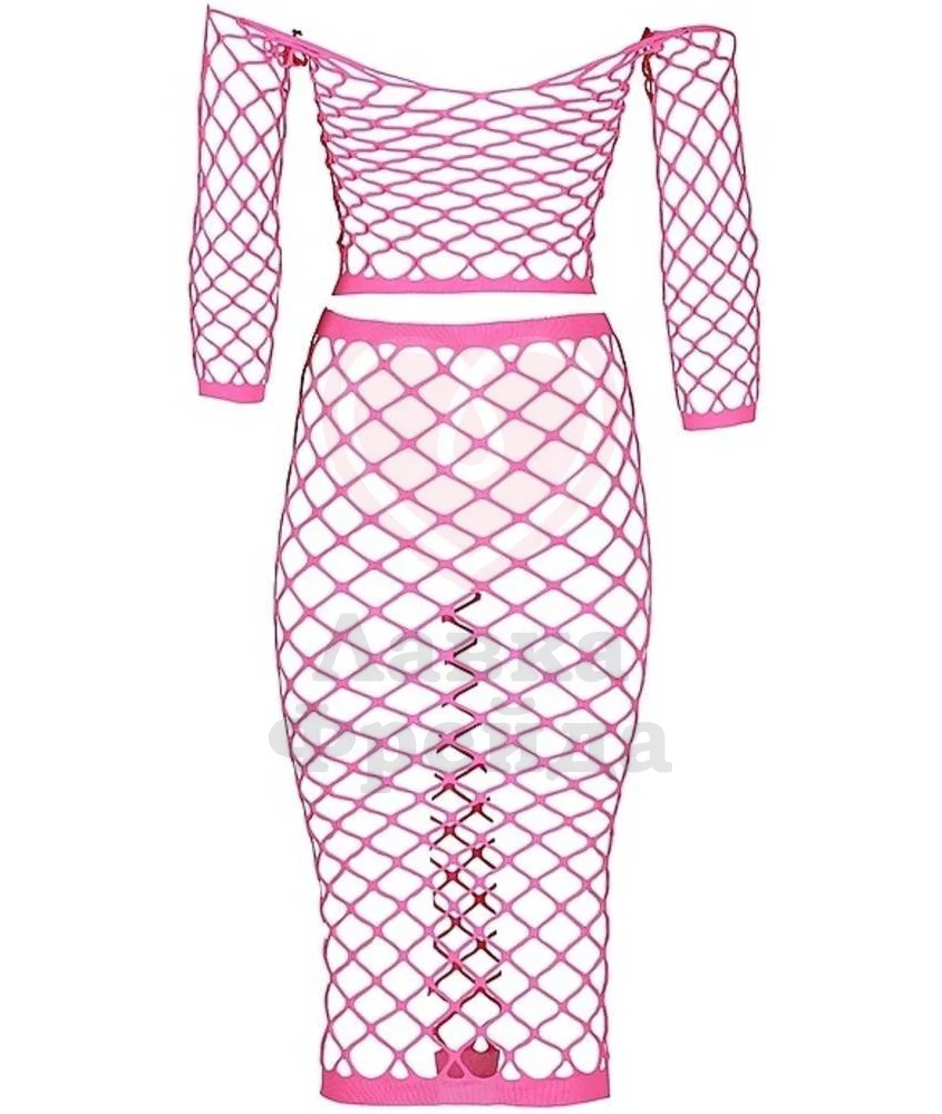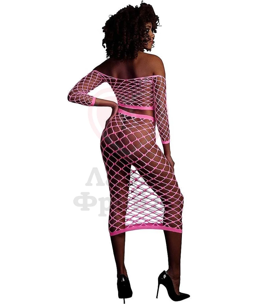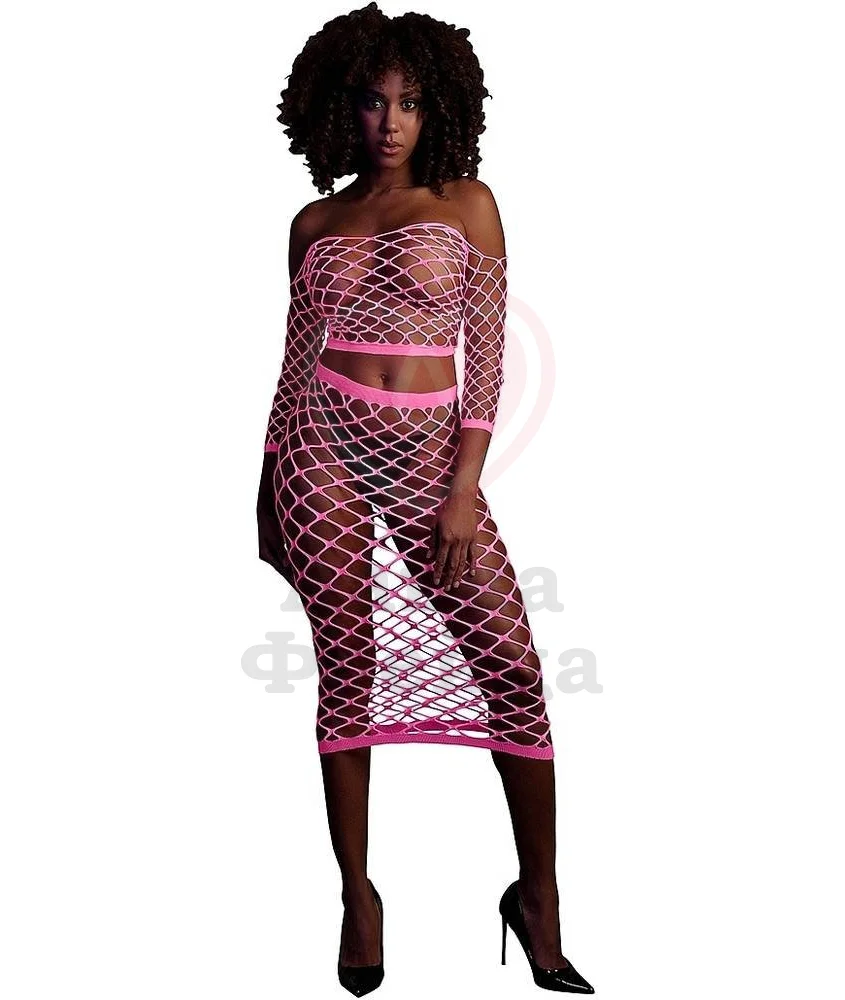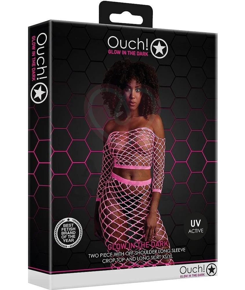 Комплект Ouch! Glow In The Dark состоит из укороченного топа с открытыми плечами и длинной юбки. Крупная сетка оставляет место воображению, прекрасно дополняя ваш сексуальный образ в спальне. Комплект также можно использовать в качестве элемента наряда на веселой вечеринке, ведь материал светится в темноте. Эластичная сетка не только отлично тянется, но и легко возвращается к исходному размеру, не теряя формы.