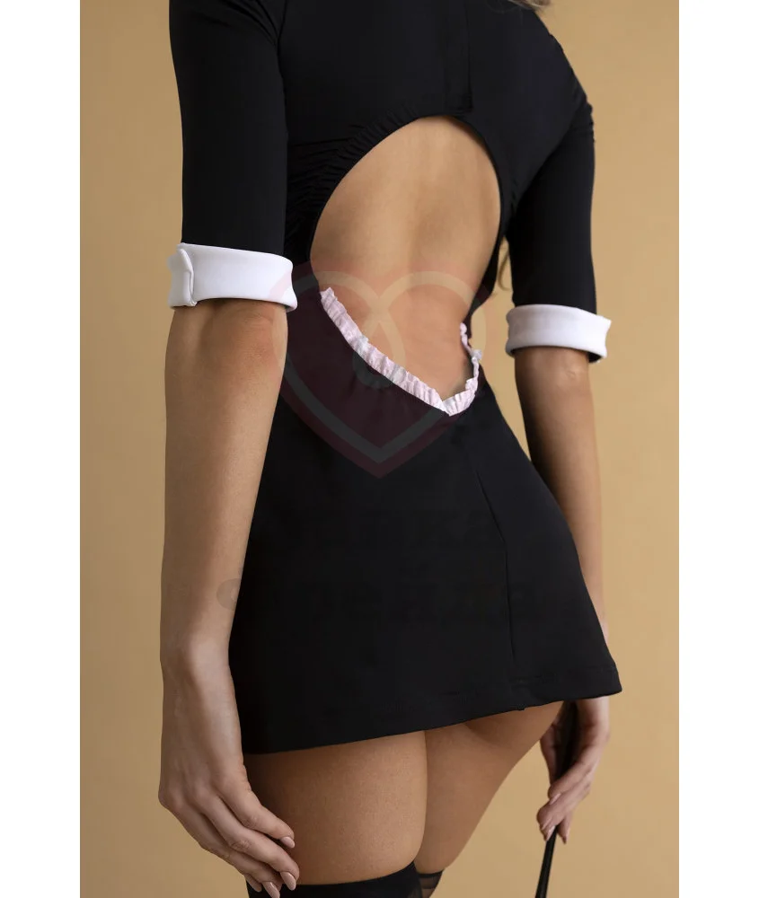 Костюм Элегантной горничной - сдержанный, но очень сексуальный комплект, создающий эротичный образ, без какой-либо пошлости. Изящное чёрное мини-платье идеально сидит по фигуре, выделяя пышность бюста, красоту ног и тонкость талии. А открытая спинка дополнительно подчеркнёт вашу индивидуальность. Высокие однотонные чулки, кокетливый белоснежный передник и узкий чокер на шею гармонично дополнят образ служанки.
