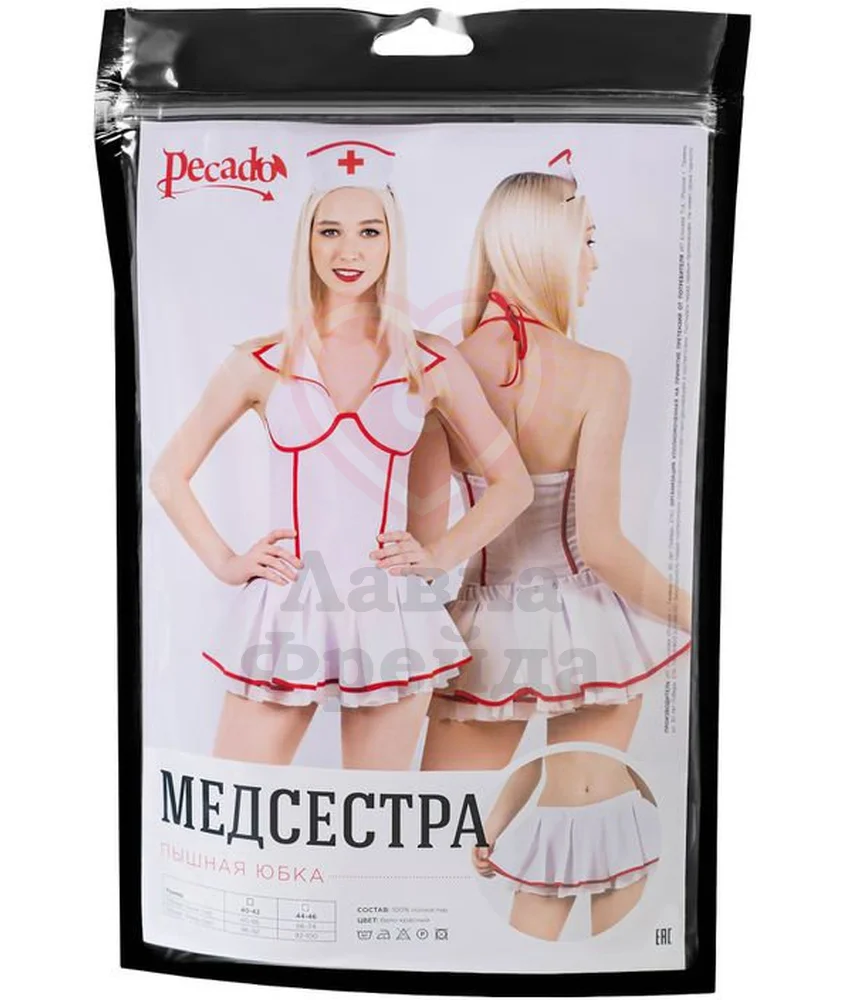 Изящная юбка Pecado BDSM - это нижняя часть эротического наряда медсестры, которая подчеркнет красоту ваших ножек и выделит талию. Мини-юбочка имеет воздушные складки по всей поверхности, которые придают образу большего озорства и кокетства. Модель дополнена прочными застежками-кнопками на поясе, которыми можно регулировать посадку изделия. Юбка сшита из 100% полиэстера - приятного на ощупь материала, устойчивого к износу, который практически не мнется и сохраняет форму после стирок.Верхнюю часть набора можно приобрести отдельно.