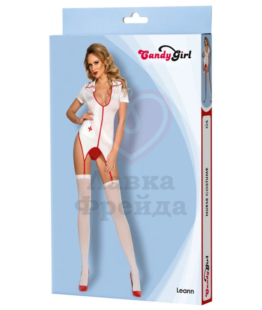Откровенный, облегающий костюм соблазнительный медсестры включает в себя: боди, трусики-стринги и чулочки. Боди отлично подчеркивает изгибы фигуры и зону декольте. Снизу на пажи закрепляются белые чулки. Попка полностью открыта, чтобы насладиться ее видом в трусиках-стрингах. Позаботьтесь о своем партнере в таком наряде, чтобы вы и ваш любимый пациент получили максимум внимания и удовольствия.