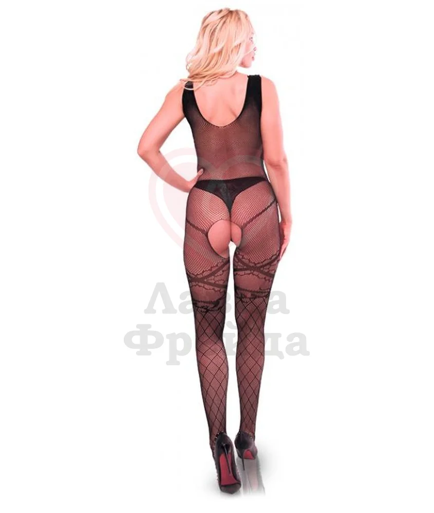 Сетчатое боди Anita изготовлено из тянущегося нейлона с добавлением спандекса. Костюм украшен цветочным рисунком. Внизу есть интимный доступ, который позволяет не раздеваться во время близости. Трусики не входят в комплект, но вы можете приобрести их отдельно. Модель S/L подойдёт девушкам с размером 42-48. Модель XL/XXL подойдёт девушкам с размером 50-54.