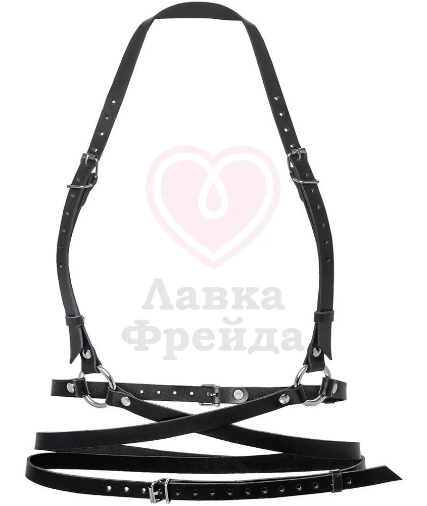 Портупея Pecado BDSM Осанка акцентирует внимание на грации и дисциплине. Конструкция изделия охватывает плечи, грудь и спину, формируя подтянутый силуэт и визуально корректируя осанку. Натуральная чёрная кожа приятна к телу, а плотные ремни равномерно распределяют нагрузку, исключая дискомфорт даже при длительной носке.