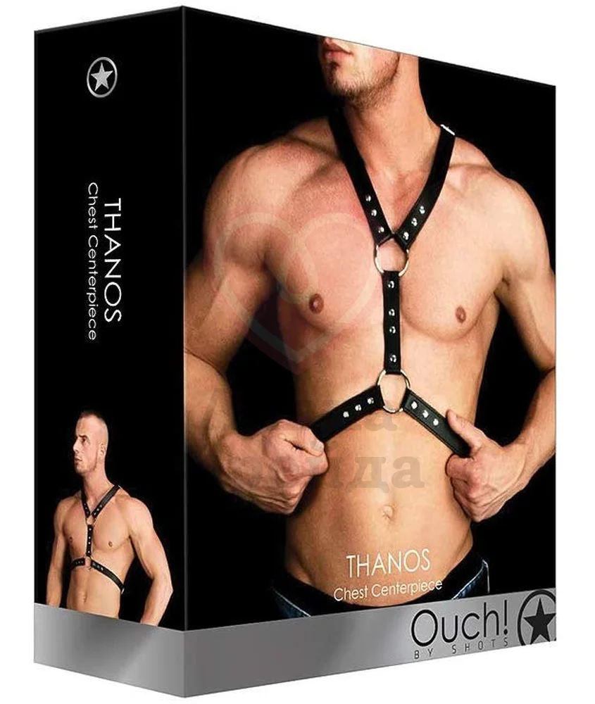 Мужская портупея Thanos Chest Centerpiece представляет собой несколько кожаных ремешков, соединённых двумя металлическими колечками спереди и сзади. Это классный аксессуар для разных игр и вечеринок в стиле БДСМ. Чёрные ремешки привлекают внимание к груди и спине, а размер регулируется.
