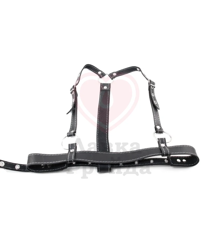 Стильная и универсальная портупея из натуральной может быть предметом эротического наряда как верхнего, так и нижнего партнера. Благодаря трем регулирующимся по длине ремешкам на пряжках она подойдет к размеру от S до L.