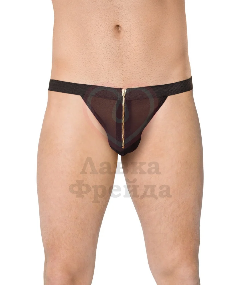 Мужские стриги из полупрозрачной ткани и плотного пояса дополнены молнией, скрывающей всё самое интересное. Интригу очень легко развеяться в нужны момент, открыв застёжку. Такое бельё подойдёт для особого вечера, чтобы удивить партнёра.