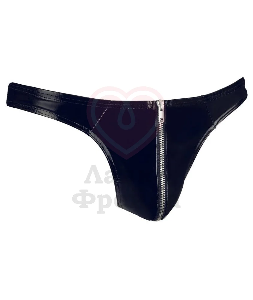 Мужские трусы-брифы выполнены из эластичной ткани, которая легко тянется и напоминает внешним блеском винил или кожу. Молния спереди добавлена не только для стильного вида, но и для удобства использования — можно быстро снять всю одежду, что станет вдруг лишней и даже насладиться некоторыми ласками, не снимая белья.