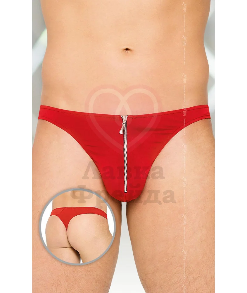 Красные мужские трусы-стринги выполнены из плотной эластичной ткани. Застёжка позволяет быстро обнажить самую интимную часть мужского тела. Вы можете сделать это сами или доверить своей половинке.