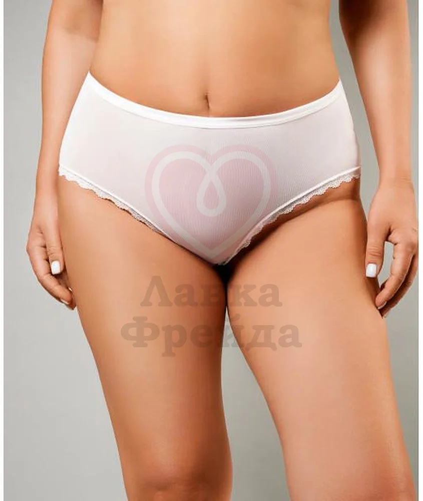 Высокие трусики из мелкой полупрозрачной сеточки дополнены соблазнительным вырезом сзади и украшены кружевом с узором из эластичных лент. Ткань ощущается на теле максимально комфортно, аккуратно подчеркивая фигуру.